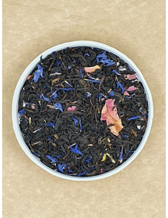 Thé Noir Coquelicot, Biscuit et pâte d’Amande, Fleurs de Pivoine Rose et de Bleuet